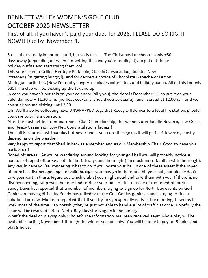 BENNETT VALLEY WOMEN’S GOLF CLUB